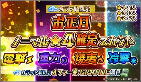 ●4種の『カラット限定ノーマル★4確定スカウト』開催中!