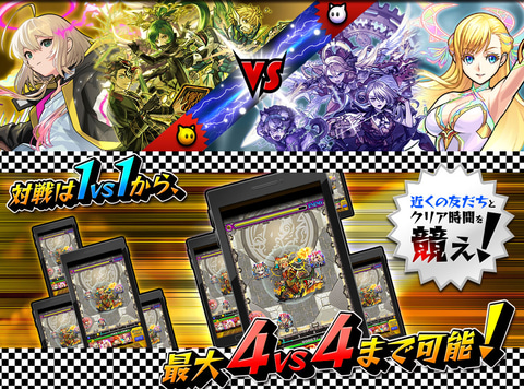 本作は、「モンスターストライク」(モンスト)初のスピンオフタイトル。「モンスト」と連携して楽しめるマルチ対戦機能に特化したゲームアプリとなっている。