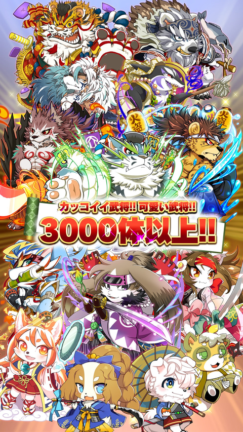 本作は、戦国武将がカワイイ「あにまる」になって天下統一を目指す戦国パズルRPG。織田信長、武田信玄などの有名武将が500人以上登場するほか、地域、アニメといった様々なコラボによるキャラクターも魅力となっている。