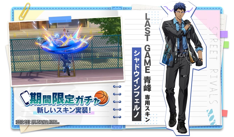 株式会社ファイブクロスは、アニメ『黒子のバスケ』の3Dバスケゲーム『黒子のバスケ Street Rivals』(黒バスSR)において、「LAST GAME 青峰(PF)」が登場する期間限定イベントを開始したことを発表いたしました。
