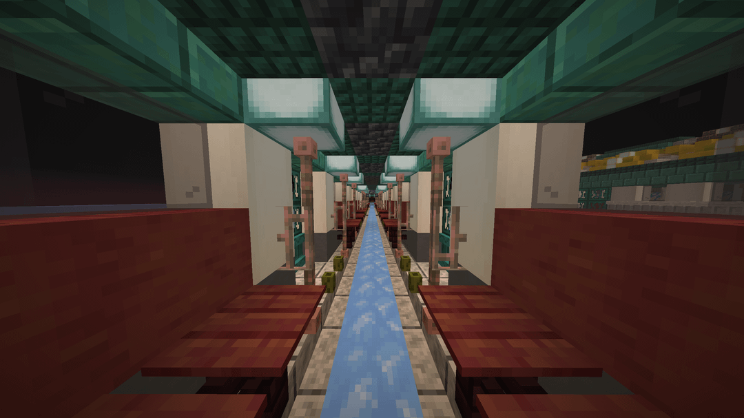 6枚目の写真は入り口です。エスカレーターを廃止し、レッドストーンエレベーター用の開口部を設けました。 最後の写真は電車の車内、別名ボートで移動する場合に見える部分です。シーピクルスが気になる場合は、それらは完全にオプションですが、すべての壁が完全に面一になり、フェンスなどにぶつからないようにするためのものです。 そうそう by chernytoastdrawing