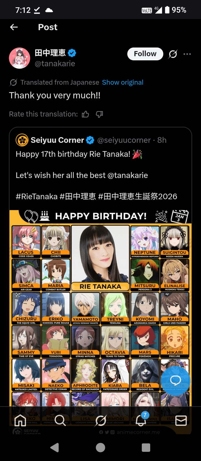 田中理恵さん、17歳のお誕生日おめでとうございます! (別名ヒメコ声優)