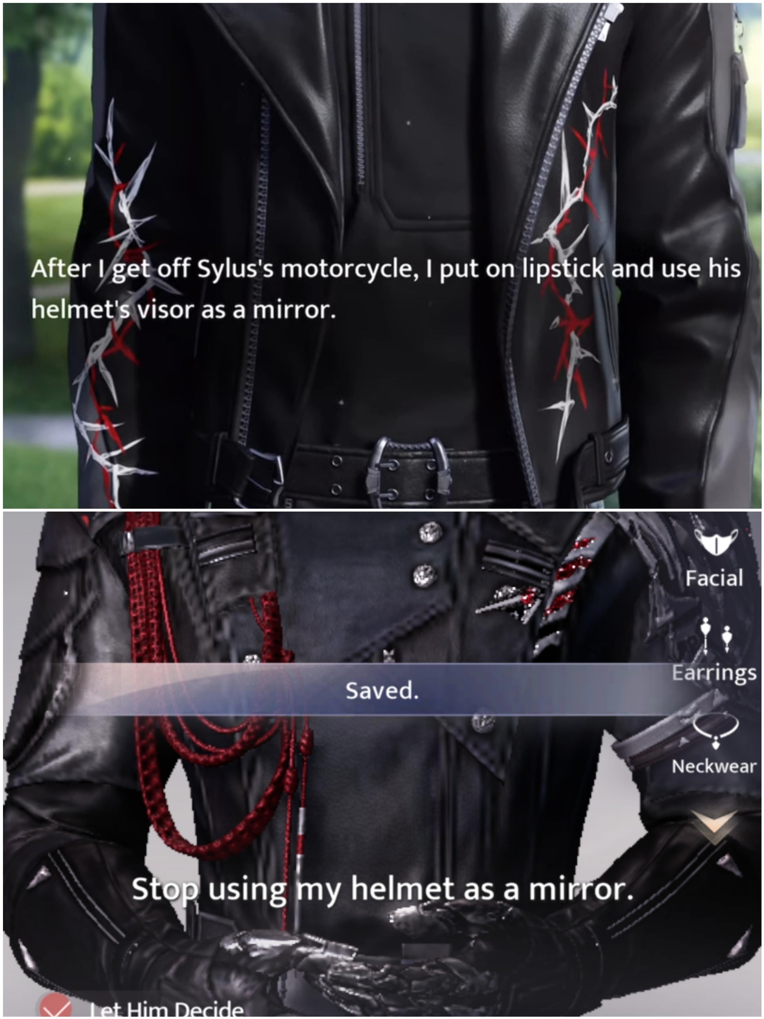 彼女がヘルメットの下をつかんで頭を安定させ、リップを塗っているところを想像します。