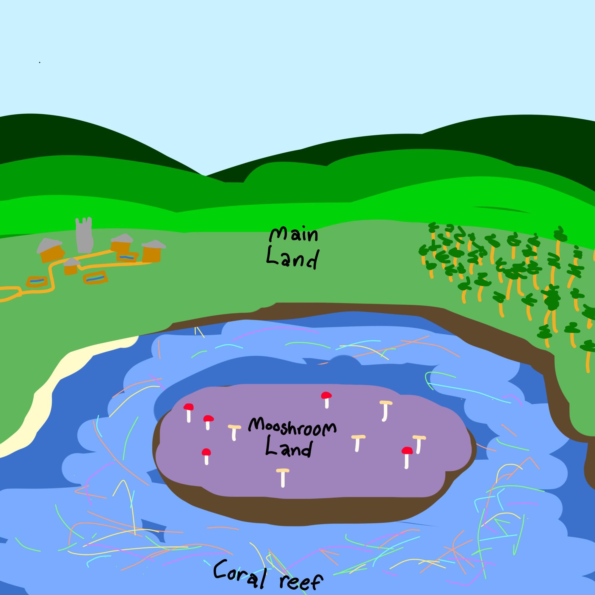 かなりの確率でそうなるのはわかっていますが、このような種をどこで見つけられるか知っている人はいますか?私は主にムーシュルームとサンゴ礁のある陸地を探しているだけです ((私のクソ絵は無視してください)) by Springtronic315
