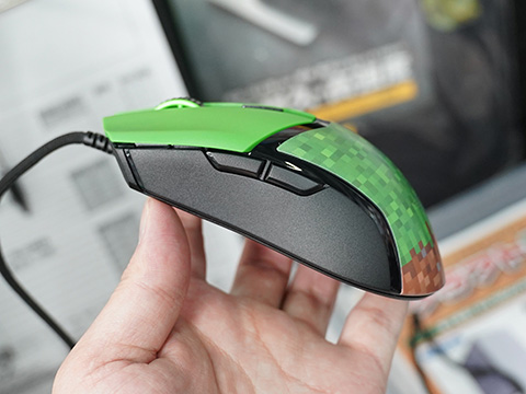 Cobra Minecraft Editionは、小型デザインを採用したゲーミングマウス。メインスイッチには同社の「第3世代 Razer オプティカルマウススイッチ」が採用されており、最大9,000万回のクリック耐久性を備えている。本体サイズは119.6×62.5×38.1mm、重量は58g。
