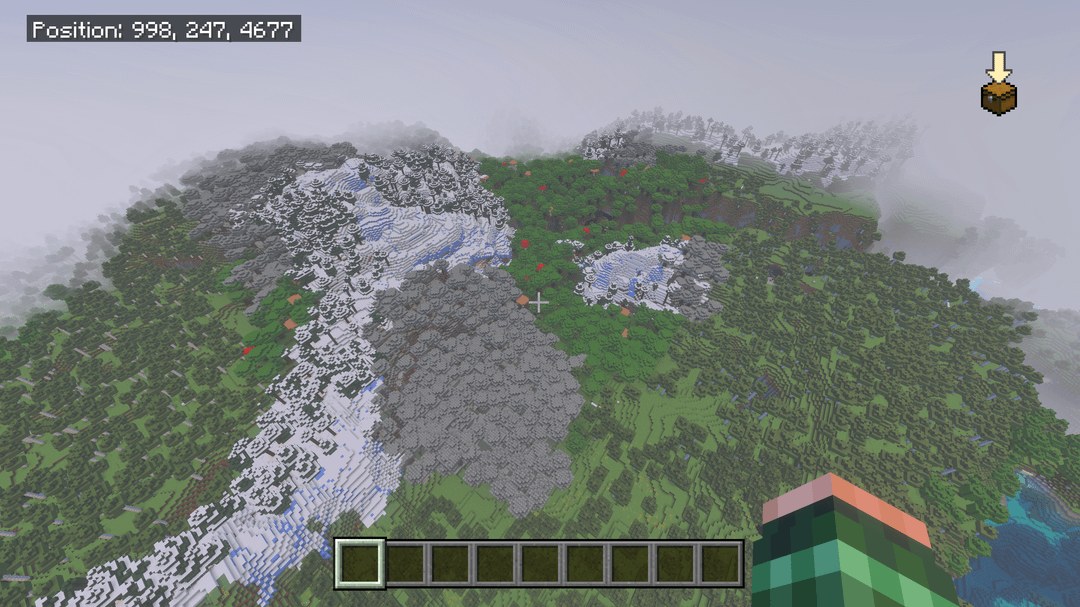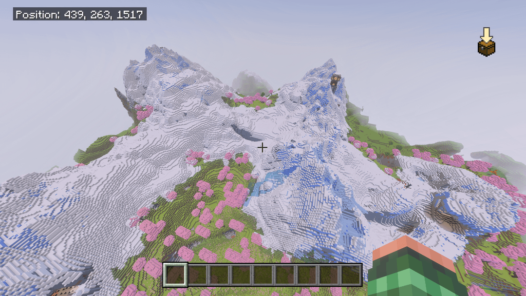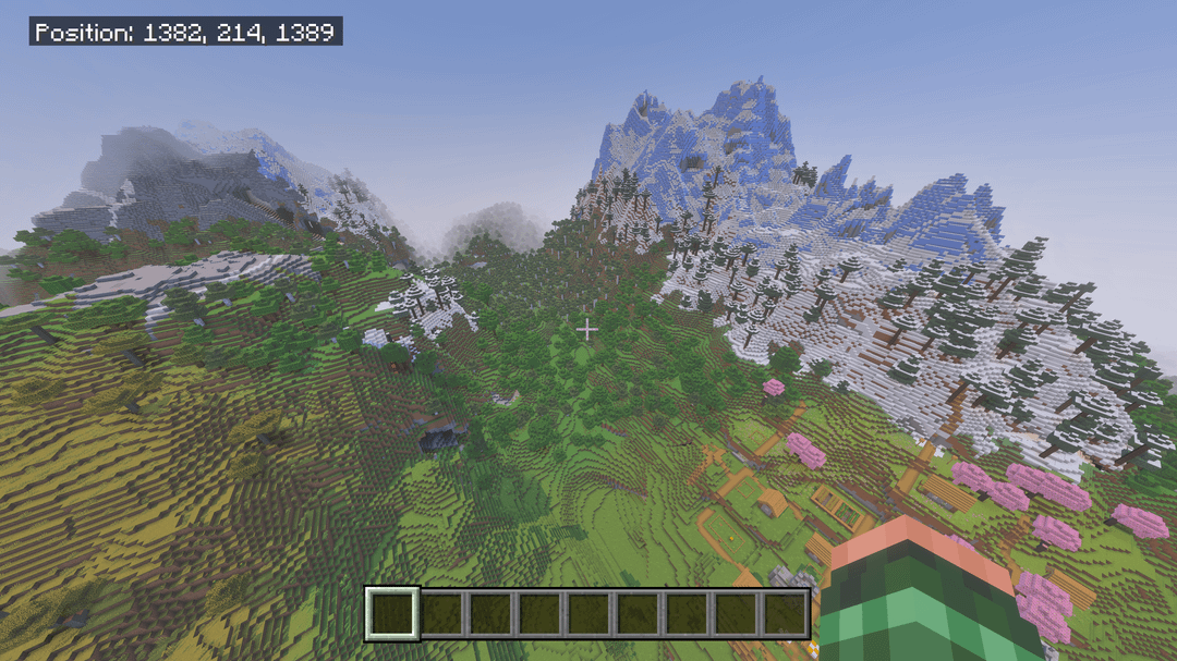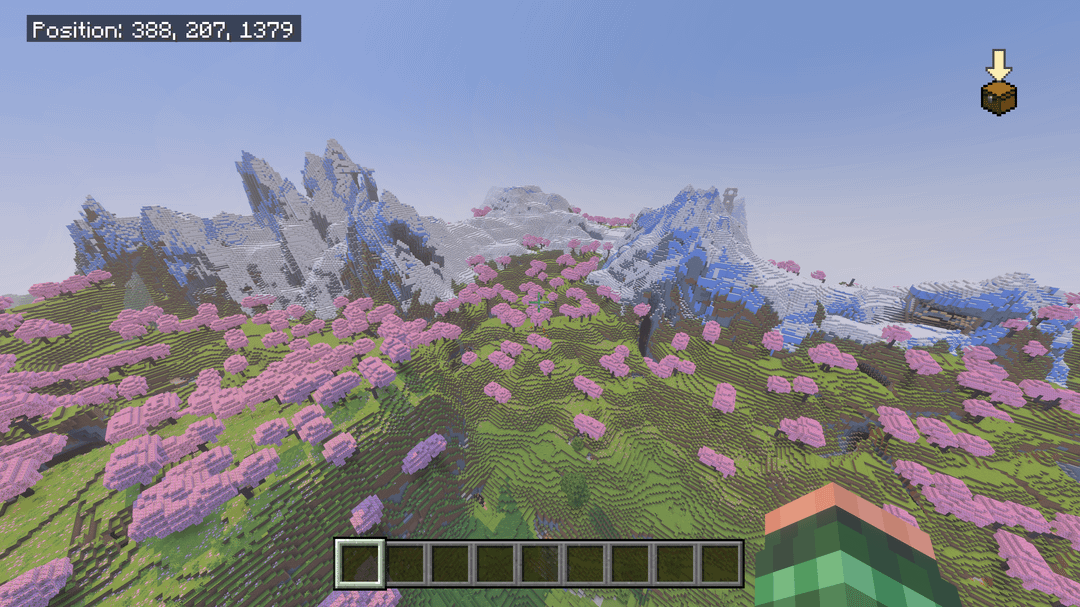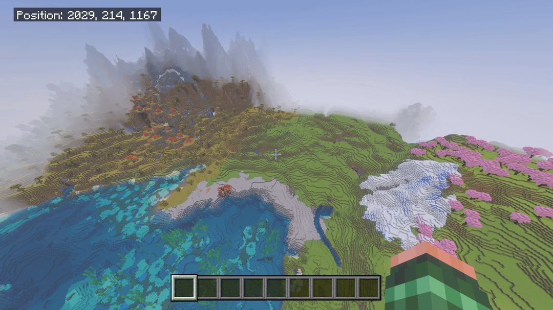 この種は変です。どっしりと太った守護者の形をした山、桜の木が生い茂る長い山脈に丘の中腹の村が並んでいます。スポーン周囲のマップの約 90% 以上が冷たい海とさまざまな森林であるため、設定をアクティブにしなくても大規模なバイオームが生成されるようです。しかし、それは私の永遠の世界であり、そこから古代都市の遺跡を備えたスカイリム風の巨大な山村を作るつもりです。