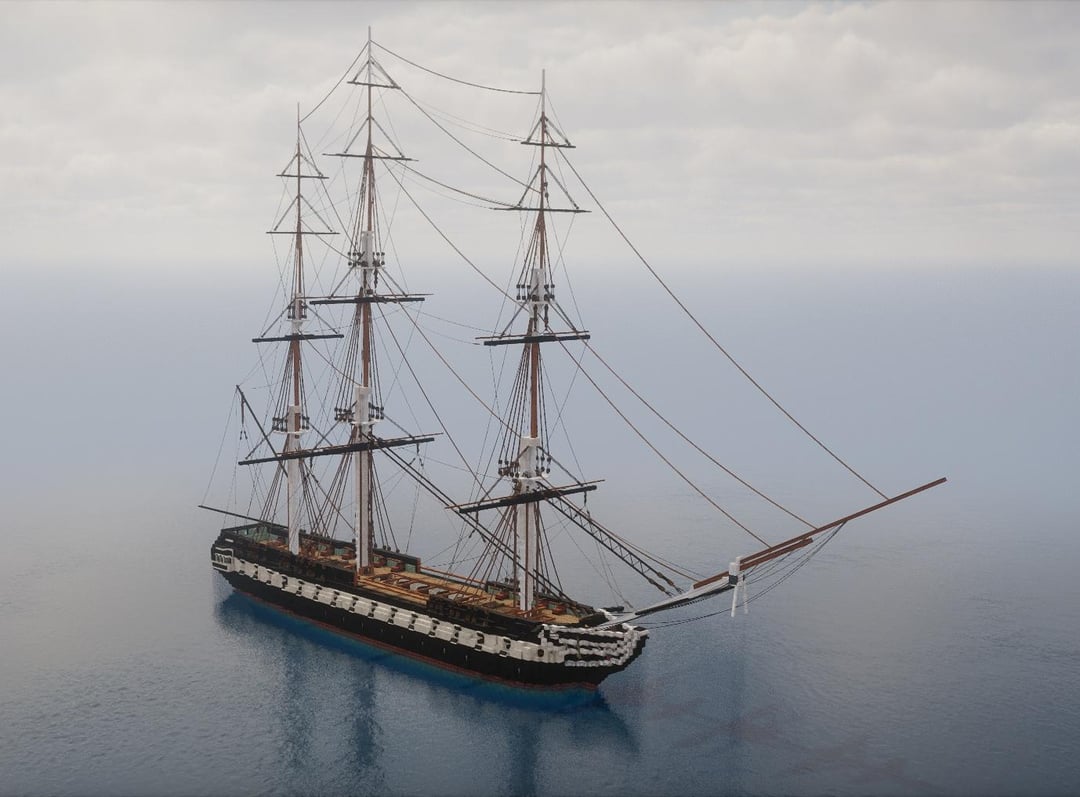 USS コンスティテューションを Minecraft で真の 1:1 スケールで再現します。主な焦点は、視覚的なショートカットではなく、歴史的なプロポーションと完全な立位/走行リギングでした。帆は選択的にありません。帆を張れば艤装が隠れるため、実際の船は現在ボストンに帆なしで展示されています。 Conquest Reforged 1.20、正確な配置のための Axiom、および Mirrowen ロープ MOD (現在アルファ版) を使用して構築されました。これは私がこれまでに建造した中で最も技術的に要求の高い船です。