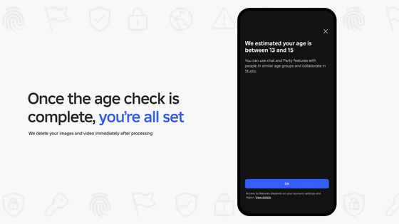 年齢推定に利用された画像および動画は安全に処理された後、直ちに削除されるため、プライバシー面の配慮は完璧であるとRobloxは述べています。年齢推定システムはPersonaが開発した、第三者機関によるテストと認定を受けたものです。イギリスの年齢確認認証制度によるテストに基づき、18歳未満のユーザーの場合、年齢推定モデルの平均絶対誤差は1.4歳であることが確認されています。
