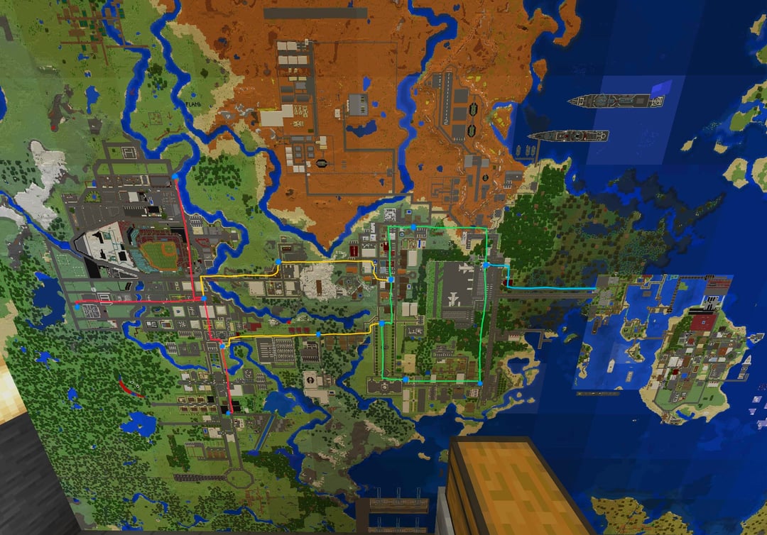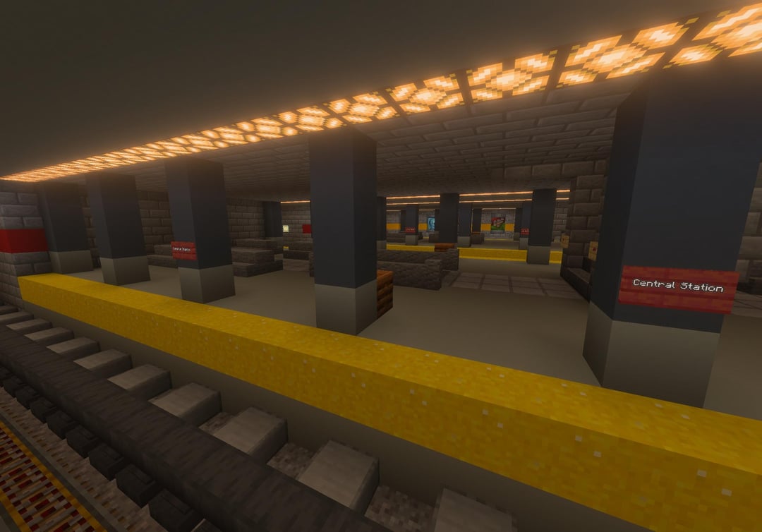 私は 5 か月間休みを繰り返しながら、築 11 年目の地下鉄システムを改修しました。以前は非常に時代遅れで非現実的に見えました (写真 12 と 13 を参照)。数十時間をかけ、110万個以上のブロックを壊し、ついに完成した。私の市のほぼ全域に 4 つの路線が乗り入れている合計 13 の駅があり、その起源は 2013 年 10 月にまで遡ります。私はノスタルジックな理由から、地図の右側の古い地域に古い地下鉄システムを保存することにしました。