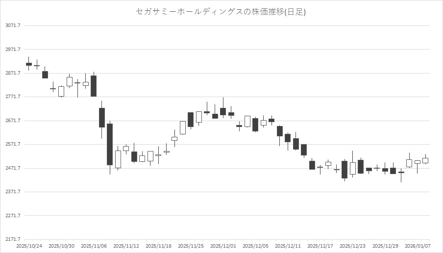 大手ゲーム関連を見ると、セガサミーHD<6460>、コナミG<9766>、スクエニHD<9684>、コーエーテクモHD<3635>が高く、ソニーG<6758>、任天堂<7974>、バンダイナムコHD<7832>、カプコン<9697>と高安マチマチ。
