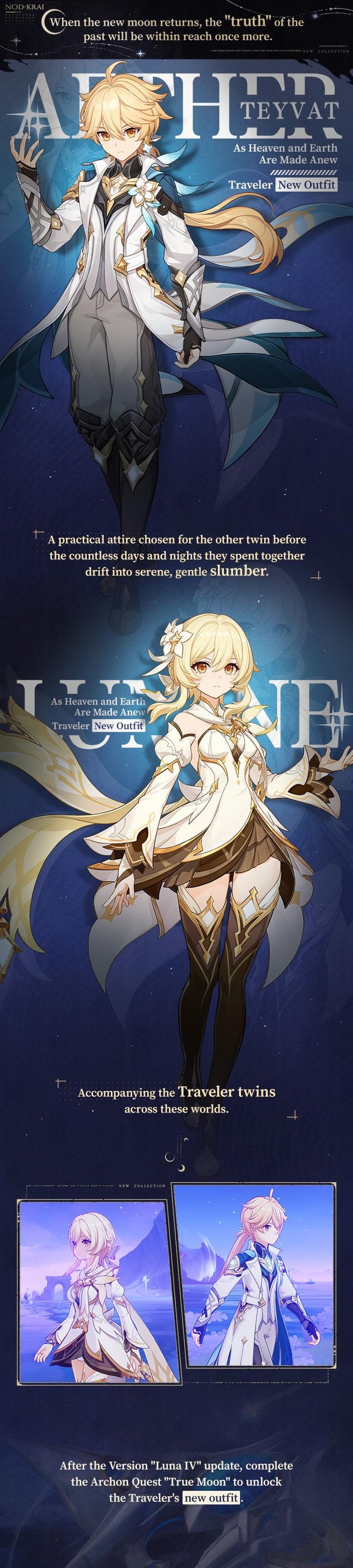 バージョン以降 "ルナⅣ" アップデートしてアルコンクエストを完了する "トゥルームーン" トラベラーの新しい衣装のロックを解除するには "天と地が新しくなるように" そして追加の才能。 by genshinimpact