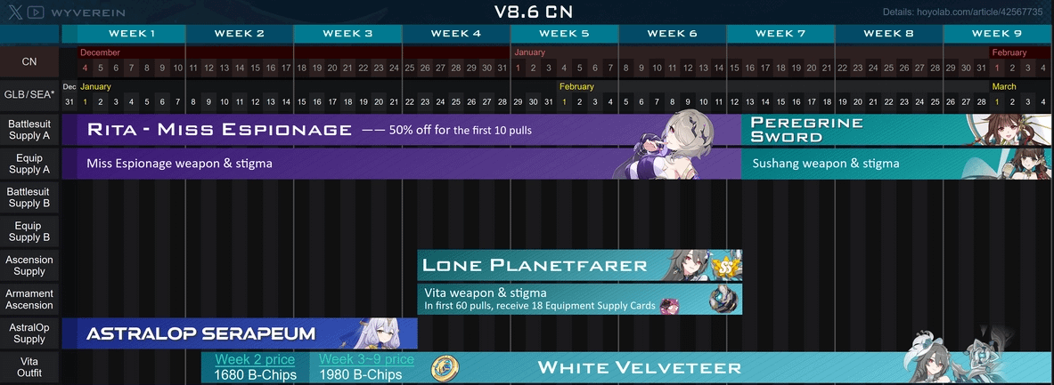 • 彼らはエリーの最初の再放送をスキップしました。前回 "次のパッチの最初の再実行" Songque が (支出イベント内で) CN Anniv パッチにプッシュされたとき、7.7 では起こりませんでした。エリーは確実に 8.7 CNY (GLB/SEA Anniv) までに最初の再実行が行われ、おそらく Vita の前回の 8.1 と同じように、ガチャ衣装の少なくとも 2 週目までには入手できるでしょう。