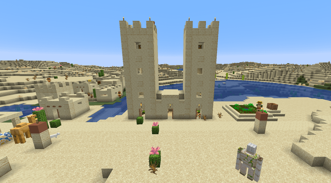 大陸の島の村にあるこの家は、ほぼ完全に人けがなく、これら 2 つの塔の間にぴったりと収まっています。座標: -700 ~ 60 シード: 752382612747780639 | Java 1.21以降 by Ok-Potential-8550