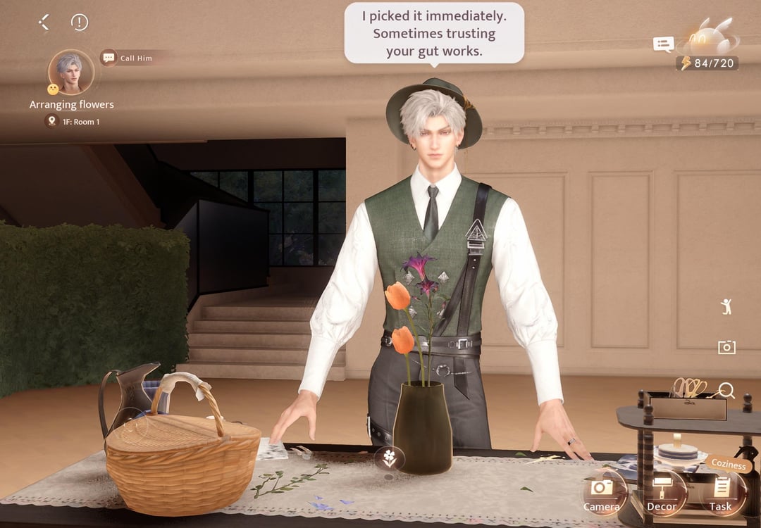 LIが積極的にフラワーアレンジメントを5つ作ってくれる必要があるだけです。これを早く終わらせたい場合は、私の方法を次に示します。まず、切り花、葉、花瓶を共有ボックスに入れ、時間管理を 12 倍に上げます。次に、床から天井までの窓、通路、ドアなど、彼が触れられるものをすべて遮断します。これにより、LI はより早く花を生け始めることになります。これを5回行うと、瞬間のロックが解除されます。
