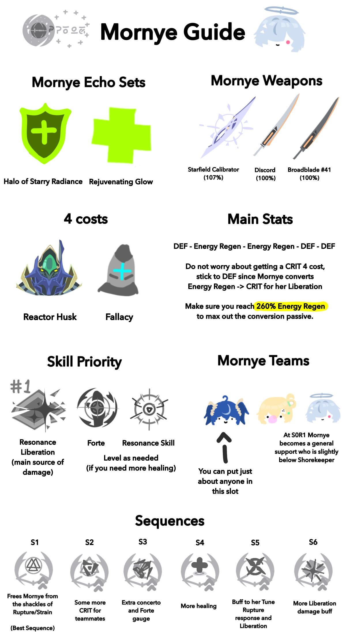 こんにちは、みんな!これが Mornye の簡単なガイドです。彼女は Tune Break メカニクスを中心とした 5 つ星のヒーラー/バフサポートです。いつものように、ご質問がございましたらコメントに残していただければお答えさせていただきます。