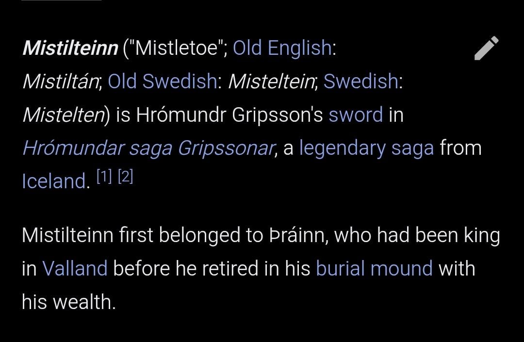 理解できない人のために説明すると、ミスティルテインは最初にスラインが所有していた剣です。でも、どうだろう? Þ という文字を翻訳すると、 "番目" 英語で。つまり、この剣はTHRAINのものだったのだ。おお船長、ファトゥイ・ハービンジャーの船長ナンバー1です。