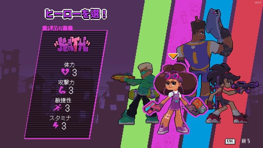 メインキャンペーンに加え、ランダムに展開されるウェーブ形式のバトルを通じた無限トレーニングルームモードを搭載し、操作練習やビルド検証、ハイスコアへの挑戦を楽しめる。アップグレードシステムではキャラクターの能力値やスキルを強化可能で、プレイスタイルの幅をさらに広げる。これらすべては、ストリートカルチャーにインスパイアされたオリジナルサウンドトラックとともに展開され、作品全体の世界観と個性を強く印象付けている。