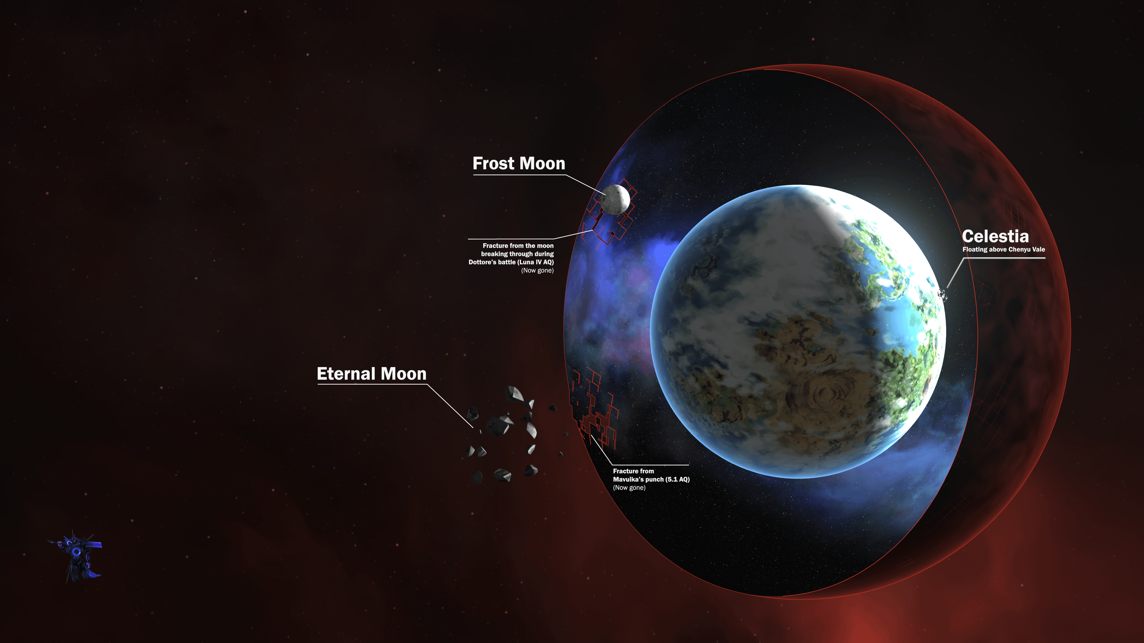ドットーレの戦いで空の半分を占めていたフロストムーンは、どのようにしてゲーム内の昼と夜のサイクルで通常の大きさにまで縮小したのでしょうか?