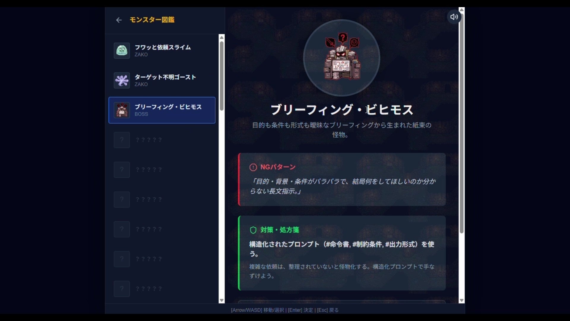 ゲーム内で登場する「フワッと依頼」「ターゲット不明」などの“あるある”を、モンスターとして可視化。