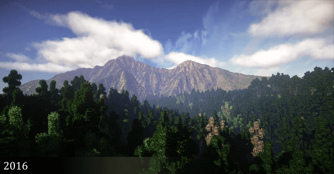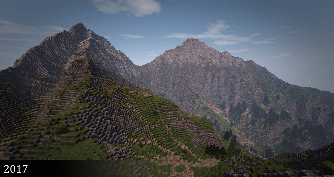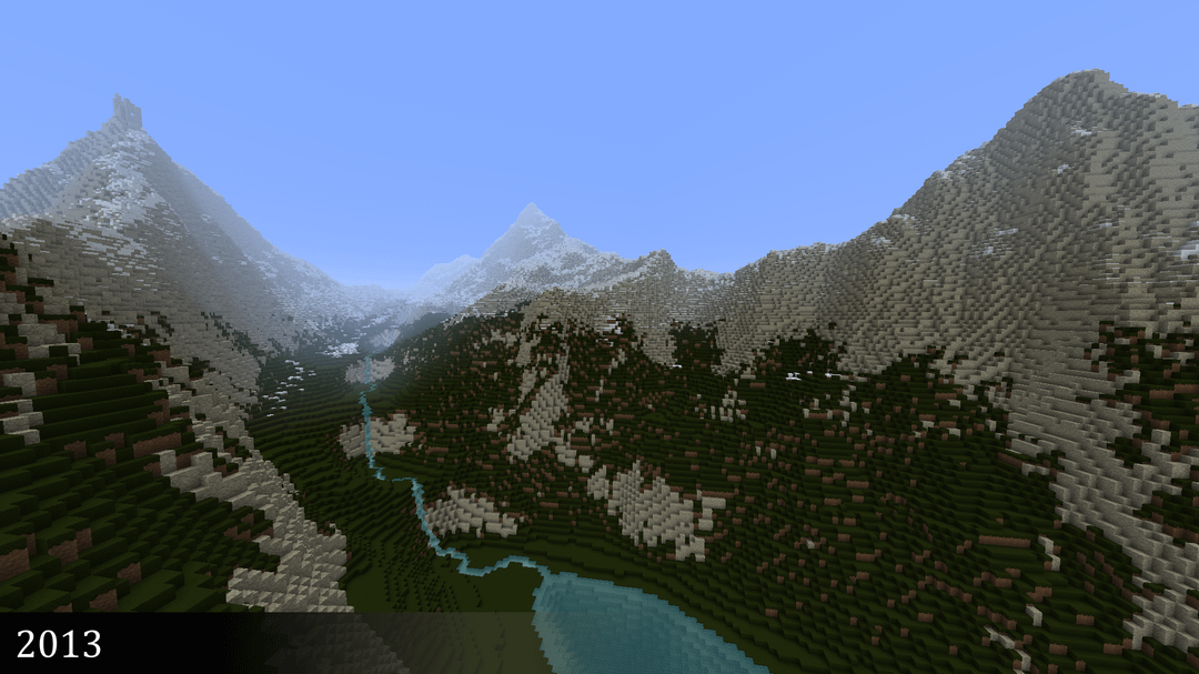 2012 年から Minecraft で山を作り続けています – ここに毎年のショットがあります