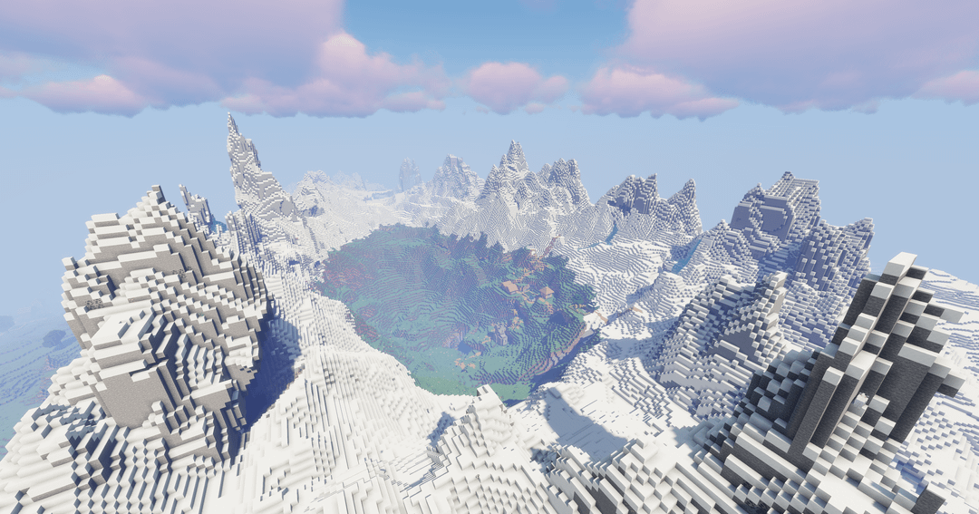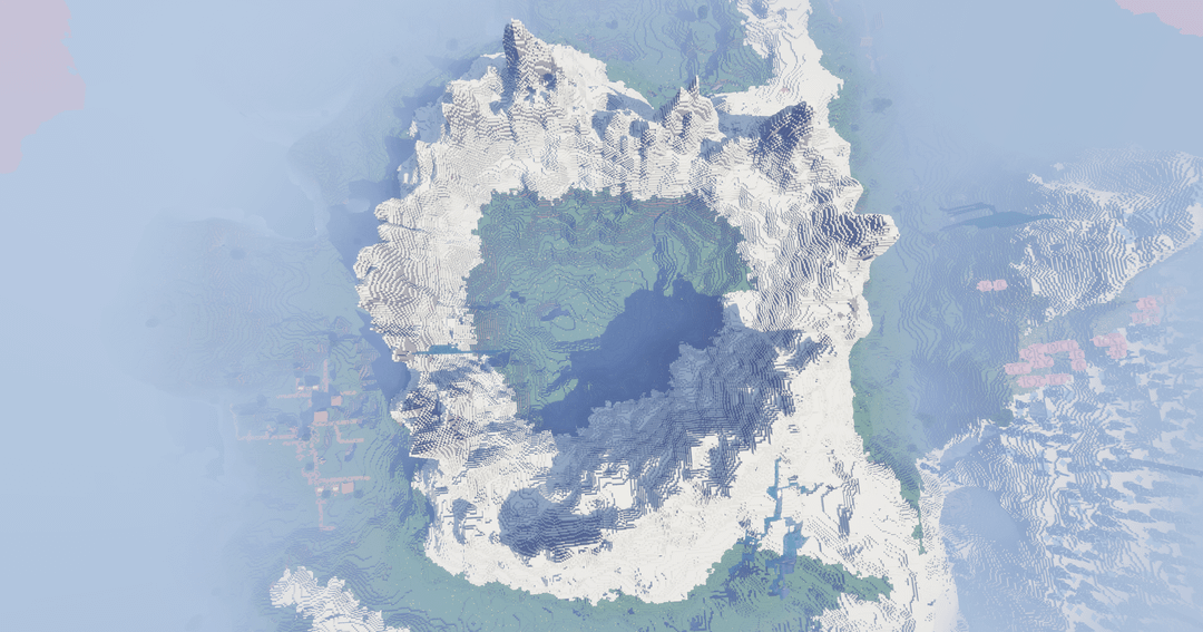 プレイ中にかなりワイルドなエリアを発見。草原を完全に取り囲む大きな山が 2 つあり、1 つは真下に要塞があり、近くにはバカみたいにたくさんの古代都市があります。ゾンビの村、山環の 1 つの内側にある通常の村、近くに地下室のあるイグルーもあります。