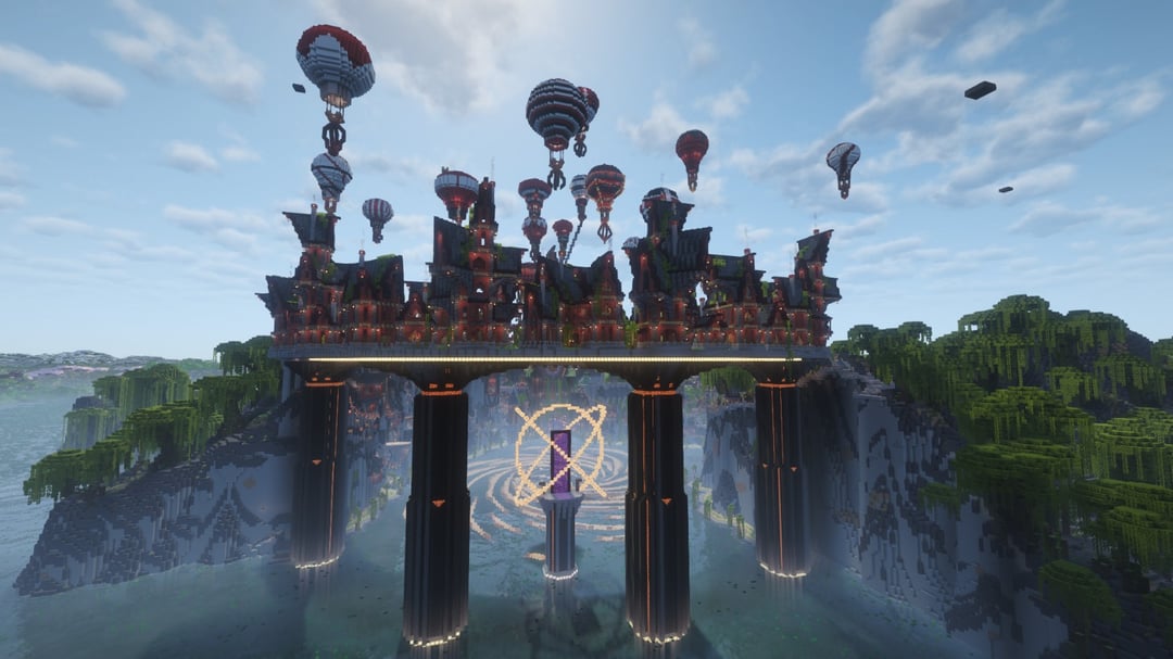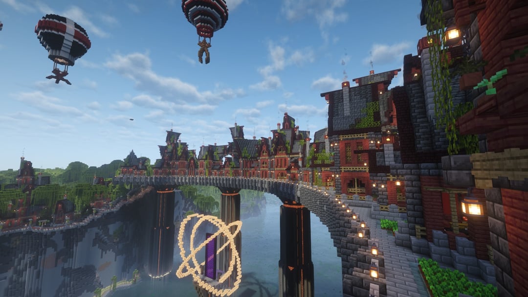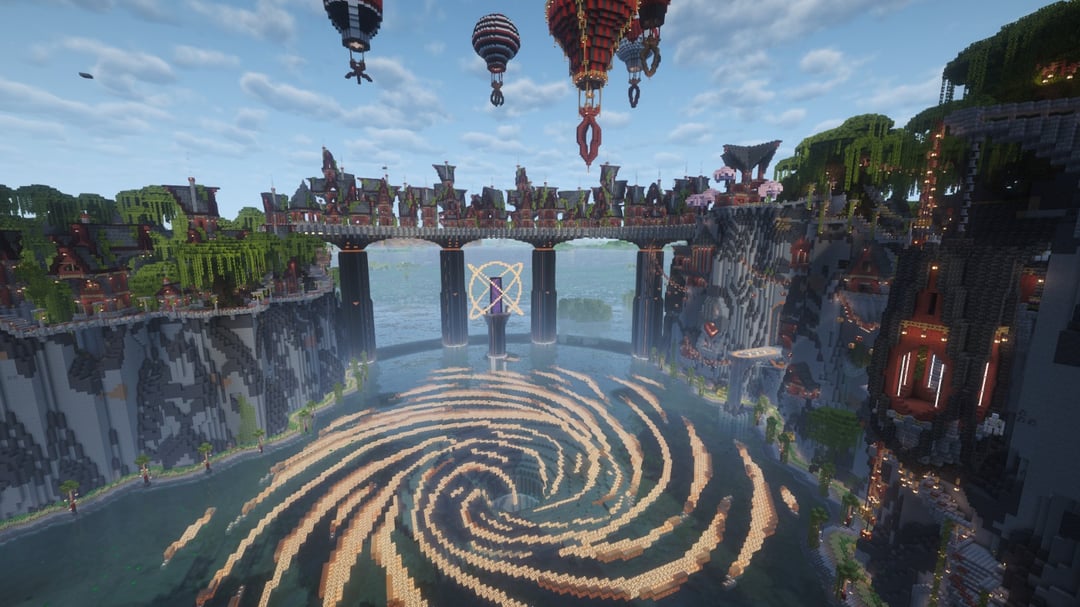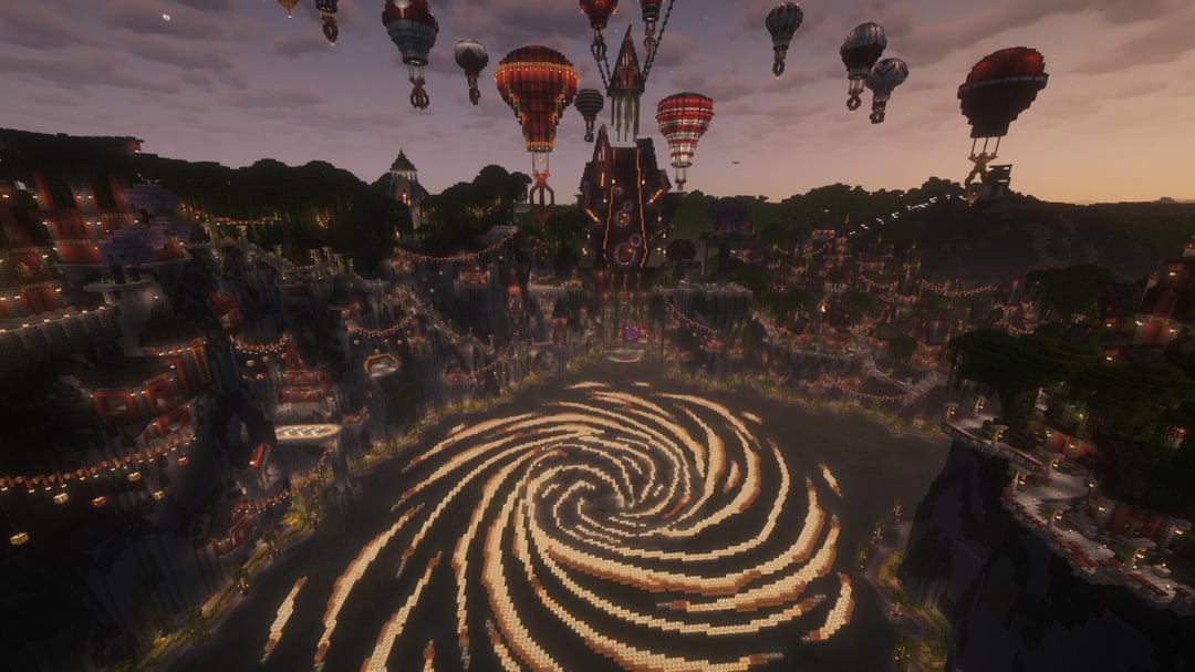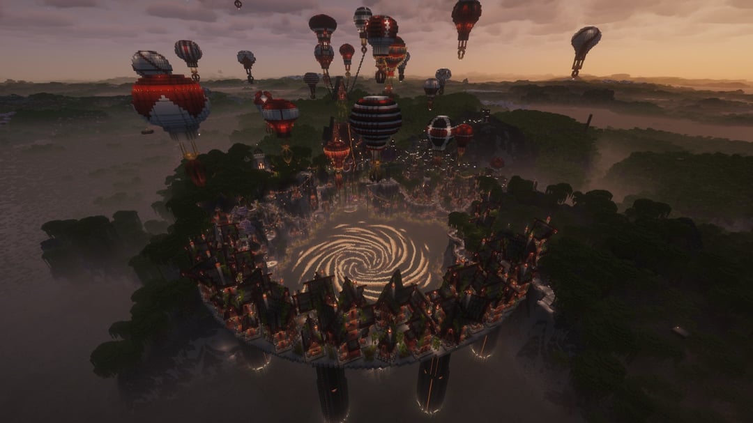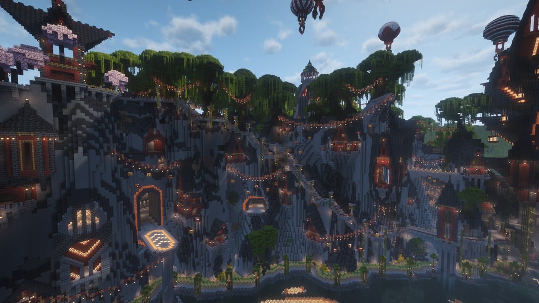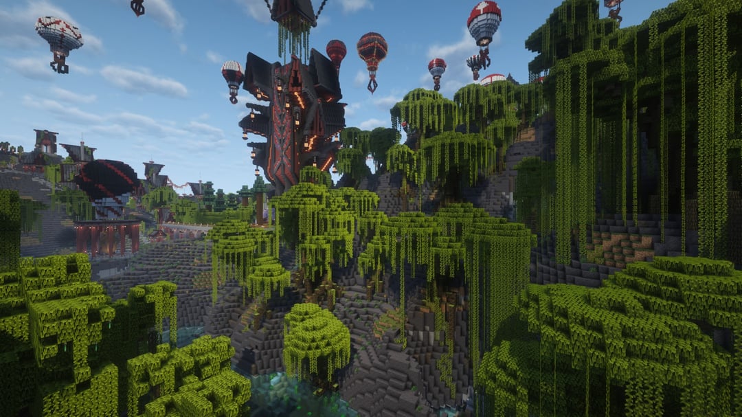 農場やカスタムの木などすべてを備えた村を作りました。崖に彫られた家々、沼地の真ん中の渦巻き、高架、建設用クレーンのような熱気球。