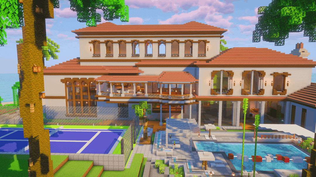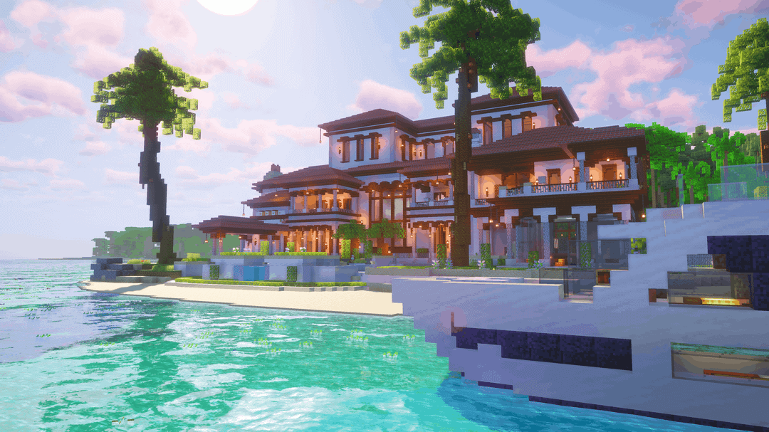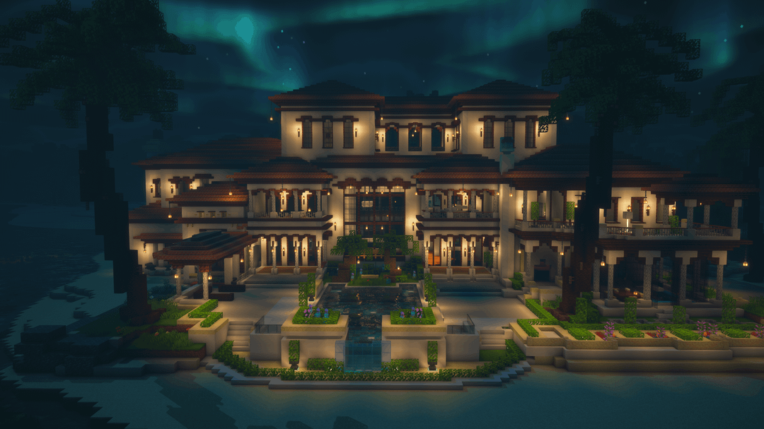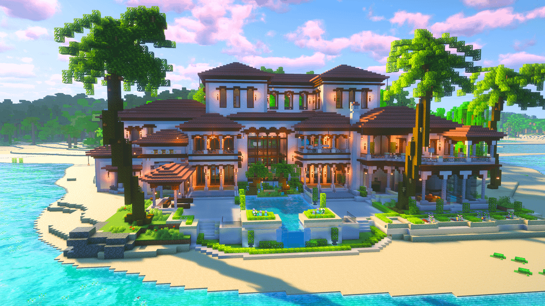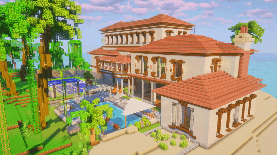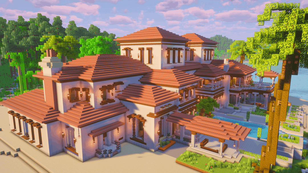 BIO で地図と回路図をダウンロード! 大きな 地中海スタイルのアイランドヴィラ 沿岸および熱帯環境向けに設計されています。明るい壁、温かみのある屋根の色調、オープンなバルコニーが、海辺の建築からインスピレーションを得たリラックスした豪華な雰囲気を作り出しています。 この建物には、層状の屋根、広々としたテラス、緑豊かな庭園、周囲の島の地形に自然に溶け込む水の要素が特徴です。豪華なサバイバルベース、ロールプレイビルド、ショーケース構造として最適です。 by BetterBuilds