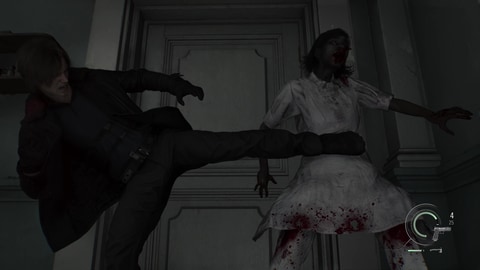 グレースパートと比べて敵の量と強さは桁違いだが、そんな多勢に無勢をものともしない戦闘力がレオンにはあった。体力の高さや火力の高いハンドガンやグレネードなどを所持しているほか、強力な体術を持ち合わせている。