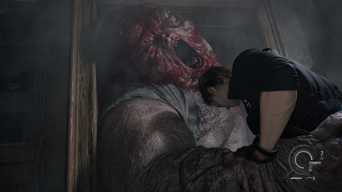 これは苦戦を強いられるかと思ったが、ボスと同じくレオンもタフで、多少の攻撃程度ではビクともしない。危なげなく巨大クリーチャーを撃破することができ、こんなヤバい相手にも軽口を叩きながら戦う姿はまさにプロフェッショナルといった感じでシビレた。