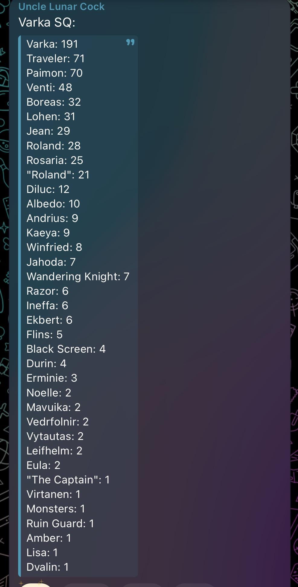アンクルLC経由のVarka SQラインカウント