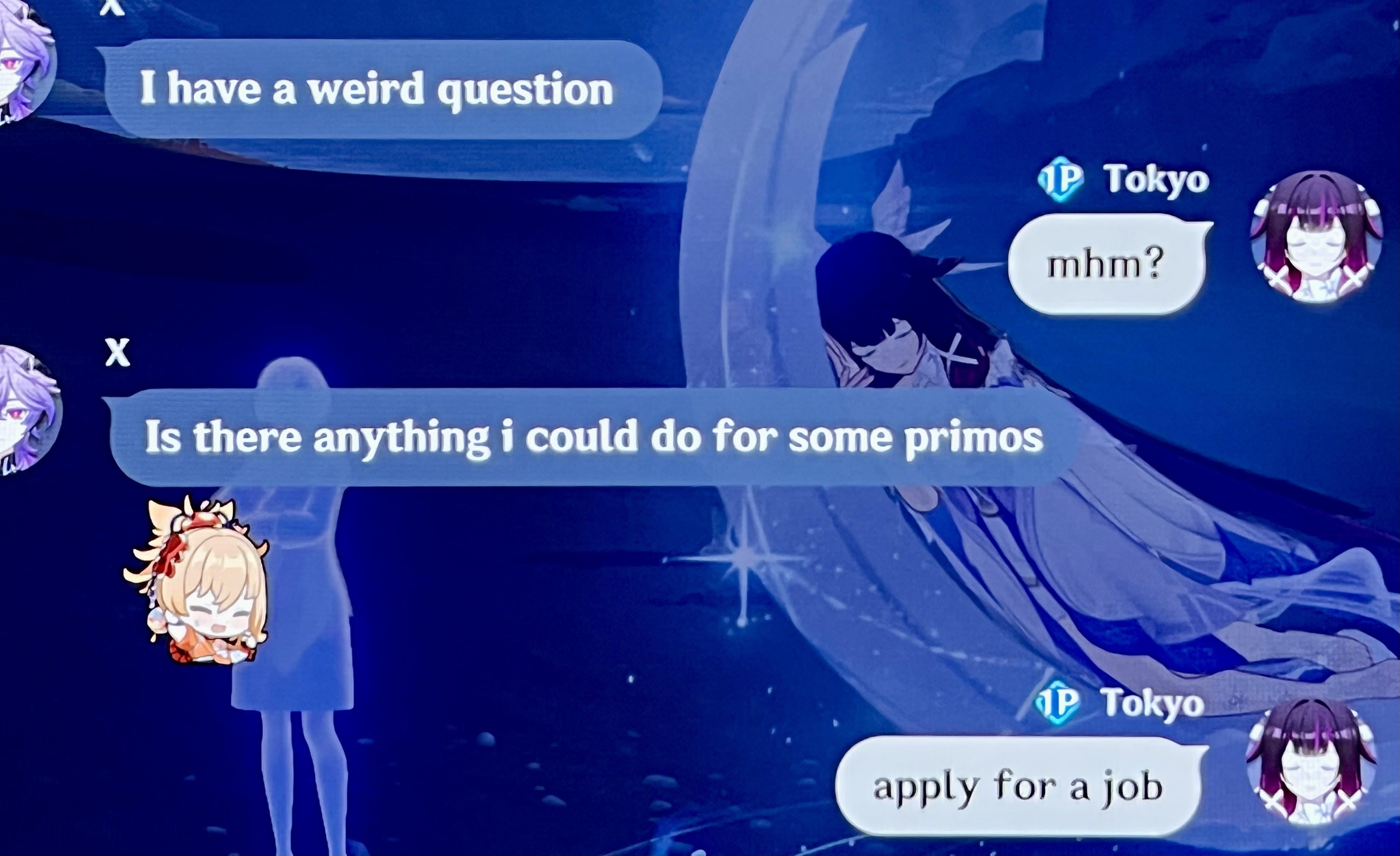 なぜこれほど多くの人が、他人の世界に参加して物乞いを始めても大丈夫だと考えるのでしょうか?彼らは、単にゲームをプレイするだけで、ギャンブル依存症の資金としてプリモジェムを蓄積できることに気づいていないのでしょうか? by SaltDistribution9533