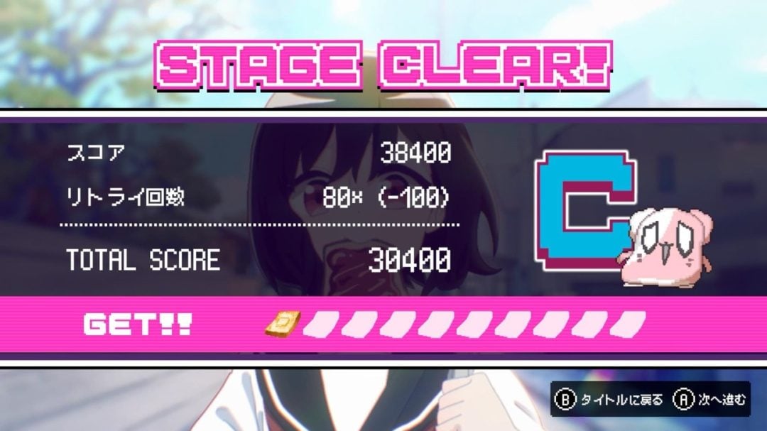 ショートアニメとは打って変わり、アクションパートではとにかくピクセルアートがかわいい。主人公ランのモーションは細やかで、走りには躍動感がある。ジャンプをすると制服がふわりとはためくなど、挙動の一つひとつが丁寧に作られている印象を受けた。ステージの舞台には、日常的な通学路の風景や京都の街並み、夜景がきれいなデートスポットなどが用意されている。さらに、ステージギミックもバリエーションがかなり豊富。オブジェクトが前方に配置されているだけではなく、マンホールが浮き上がってきたり、空からボールが降ってきたり、はたまた怒号が文字通り飛んできたりする。街の人々も釣りをしたり、カメラで写真を撮っていたりと、生活感あふれる様相で作り込まれていた。