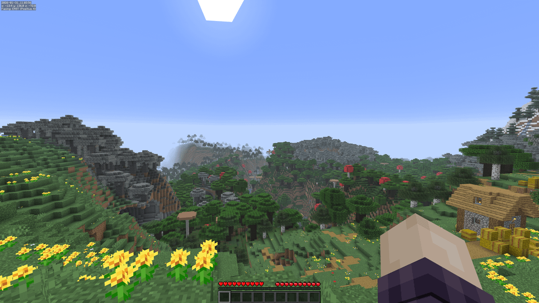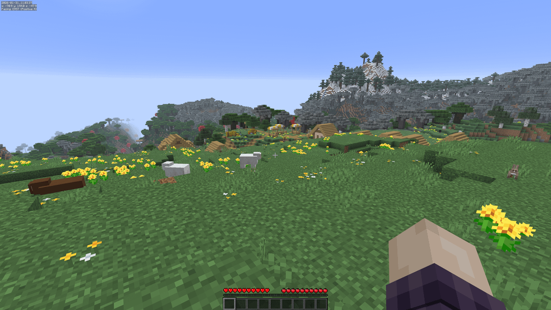 シード: 544048418 あなたは牧草地の上にある村にスポーンします。それは、淡い色の庭園、暗い樫の森、白樺の森、木立、そして凍った山々に囲まれています。 草原の下にはドリップストーンの洞窟があります。 by rks_system