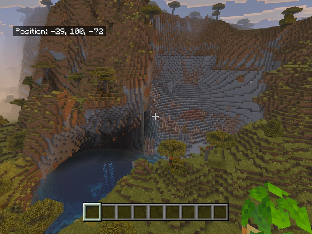 スポーンからマイナス Z 方向に約 100 ブロック進むと、すぐそこにあります。