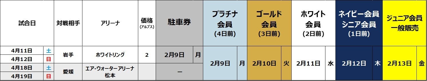 このたび、信州ブレイブウォリアーズでは、りそなグループ B.LEAGUE 2025-26シーズン後半戦(第30節、31節)ホームゲームにおけるチケット販売スケジュールが決定しましたので、お知らせいたします。
