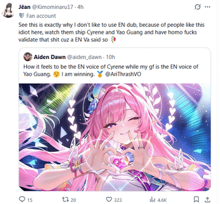 キレネの声優、彼女のガールフレンドのヤオ・グアン役を祝って嫌がらせを受ける