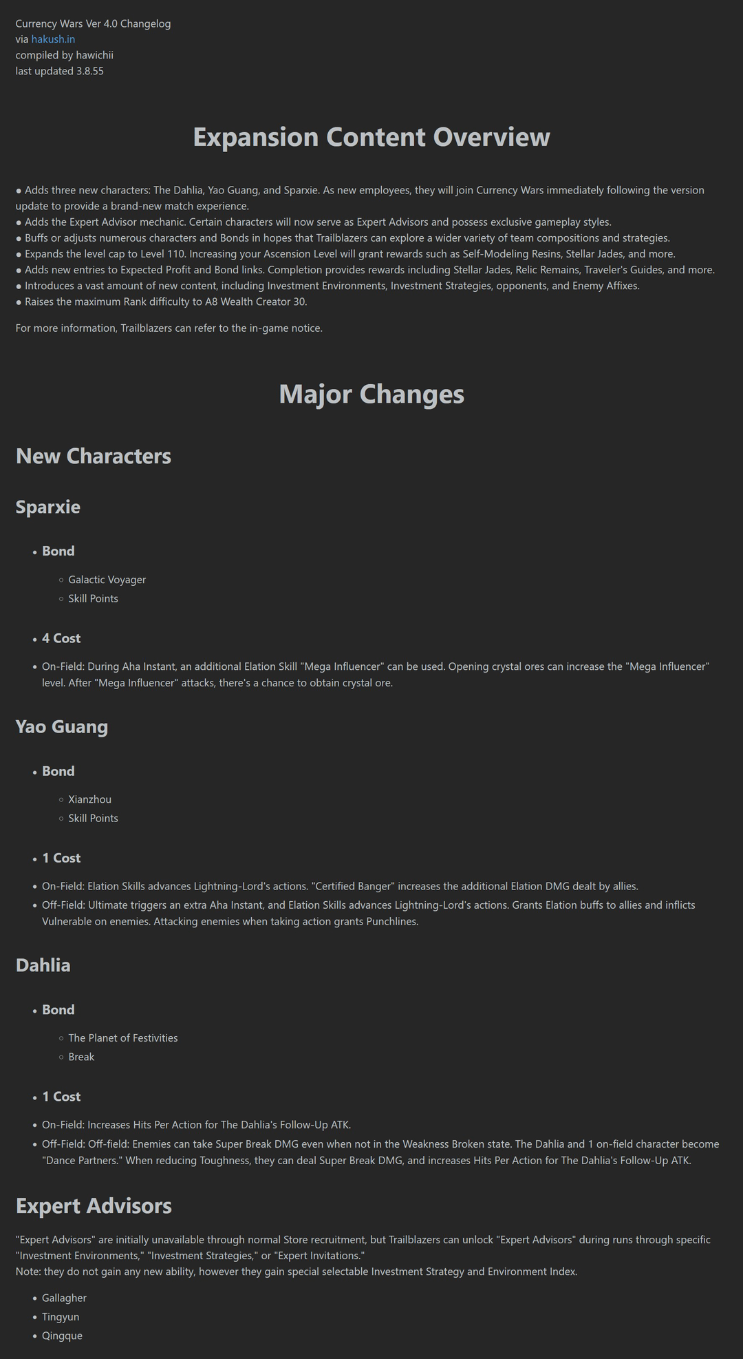 4.0 での通貨戦争の変更点 (Hakushin 経由) のコンパイル