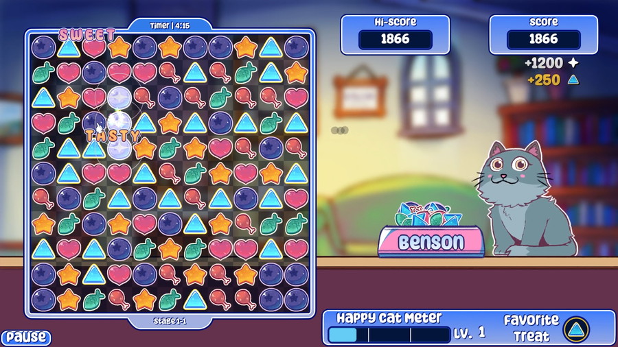 本作は、次々と現れる愛らしいネコたちに餌を与えることを目的としたマッチ3パズルゲーム。タイルをマッチさせてボウルにおやつを入れ、ネコを満足させていく。成功すれば、さらに多くのネコがプレイヤーの元にやってくる。