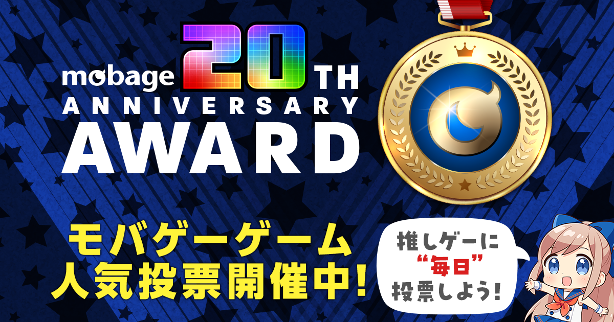 ユーザー投票で人気の「推しゲーム」を決定する「Mobage 20th Anniversary AWARD」を開催します。ノミネートされた31タイトルの中から、1日最大2票、推しゲームへ投票が可能です。投票時に任意でゲームへの応援コメントも記入が可能です。