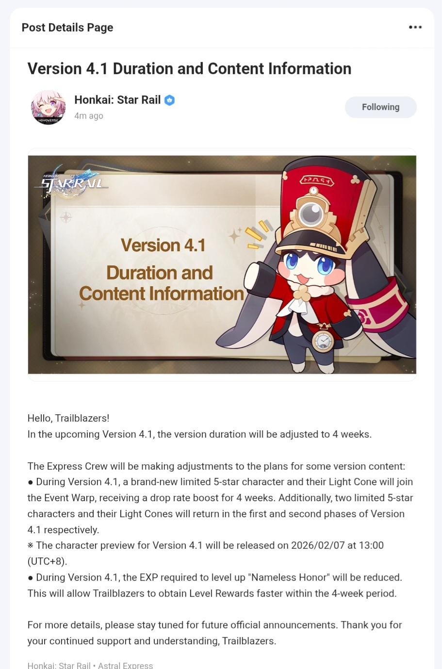バージョン 4.1 の期間と内容に関する情報
