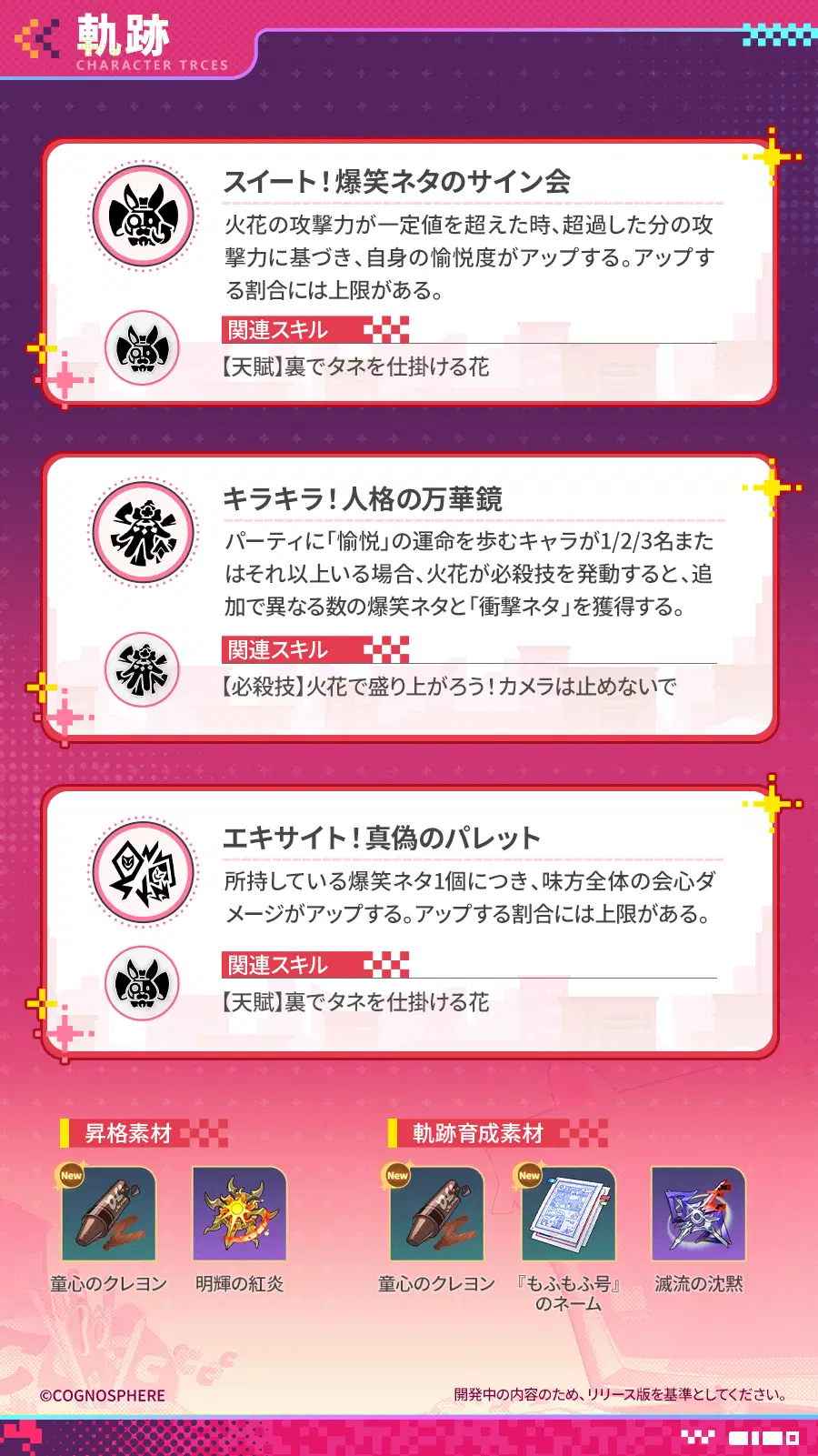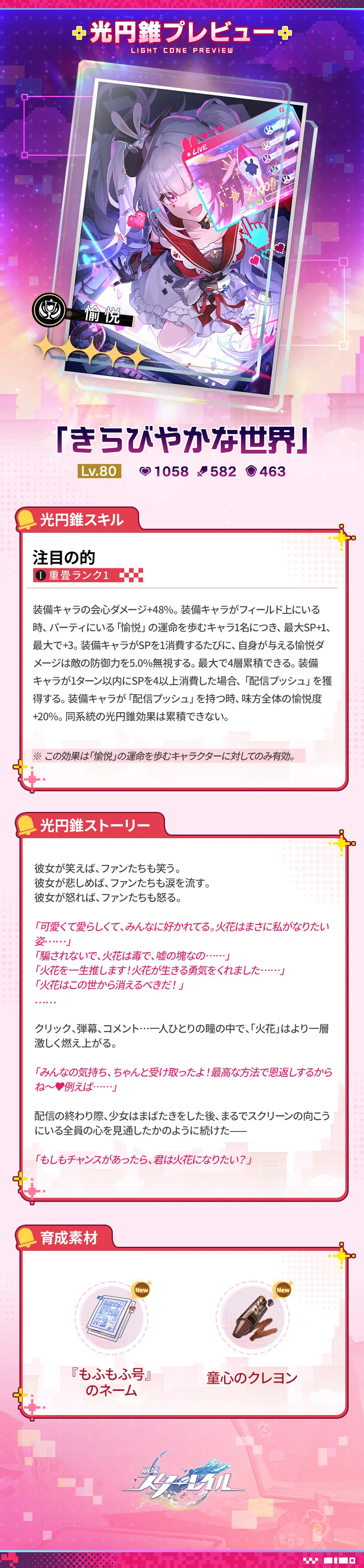 開拓者の皆様、本日は「火花(愉悦・炎)」のキャラクタープレビューをお届けします。