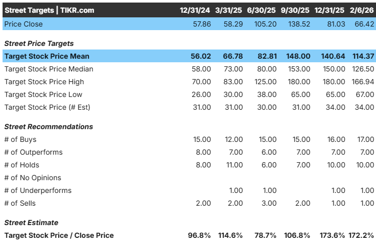 ストリート平均ターゲット:$114