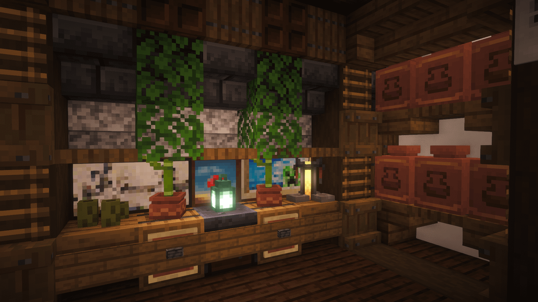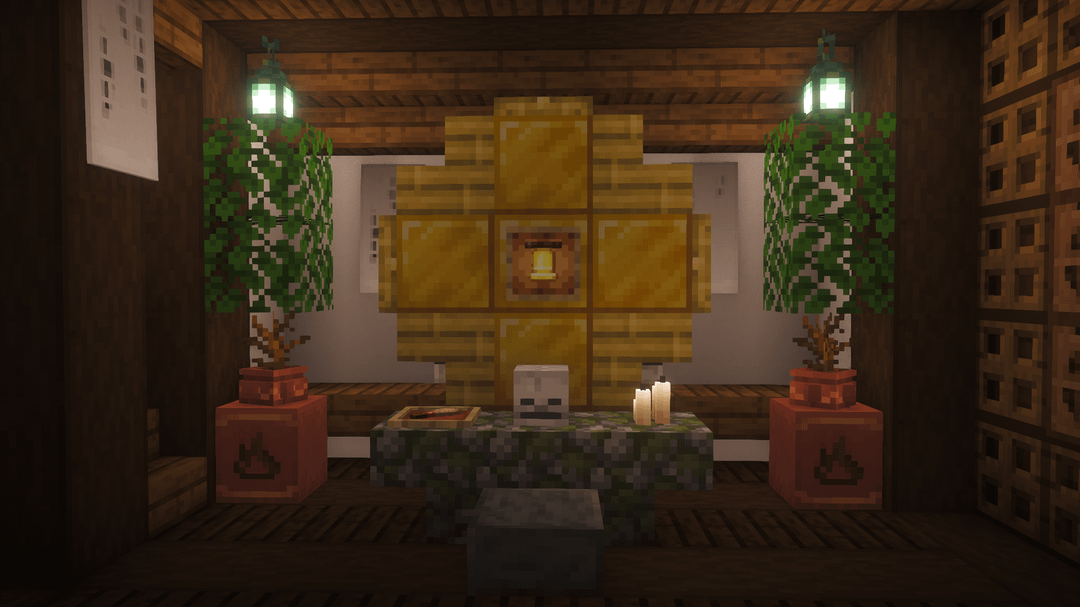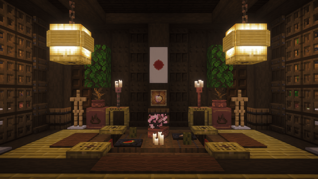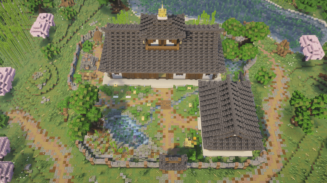 この建物には、詳細なインテリア (寝室、キッチン、倉庫、精錬エリア、隠されたネザーポータル) を備えた母屋と、付呪、醸造、鍛冶のための独立したユーティリティ建物が含まれています。伝統的な日本の建築に忠実でありながら、視覚的に興味深いビルドを維持するために、ブロックのバリエーション、カラーパレット、レイヤリングに重点を置きました。