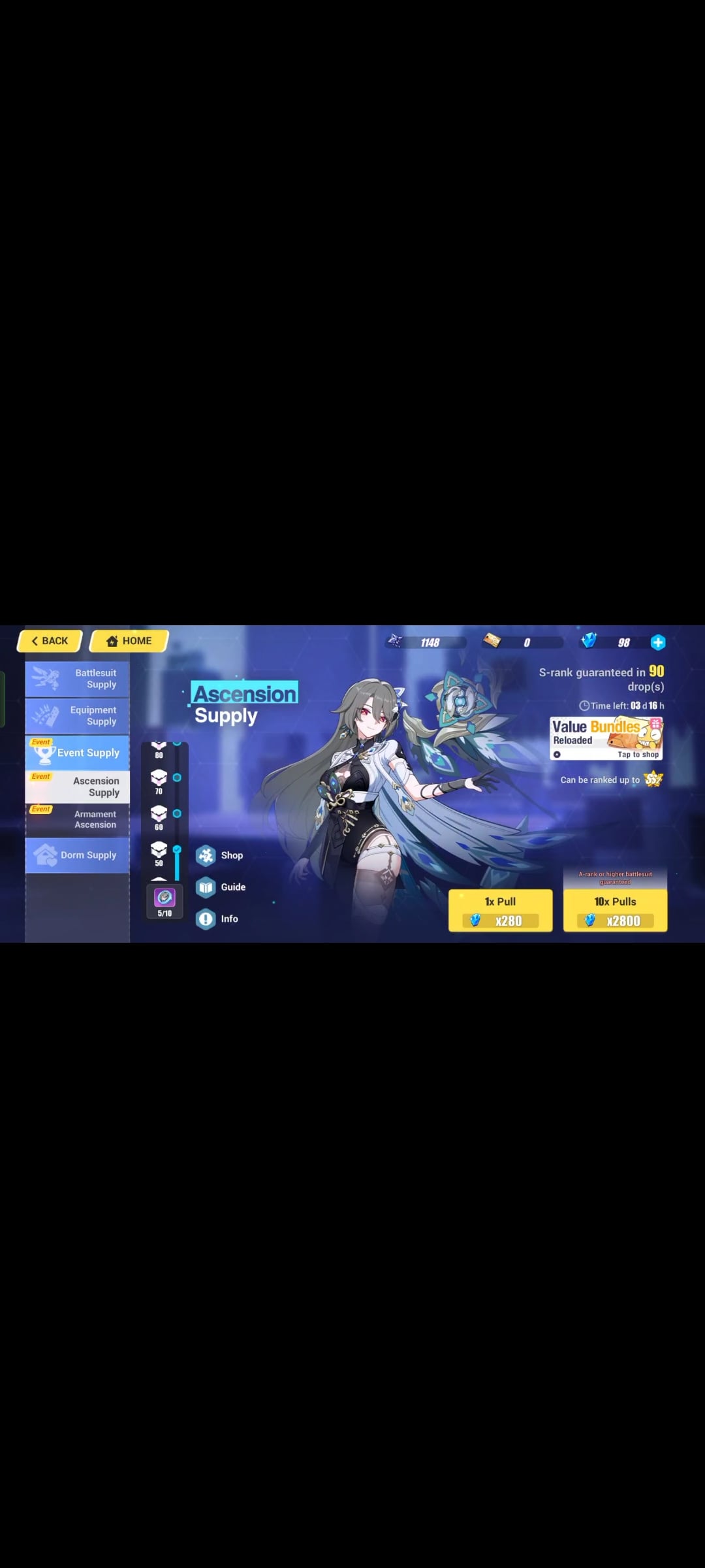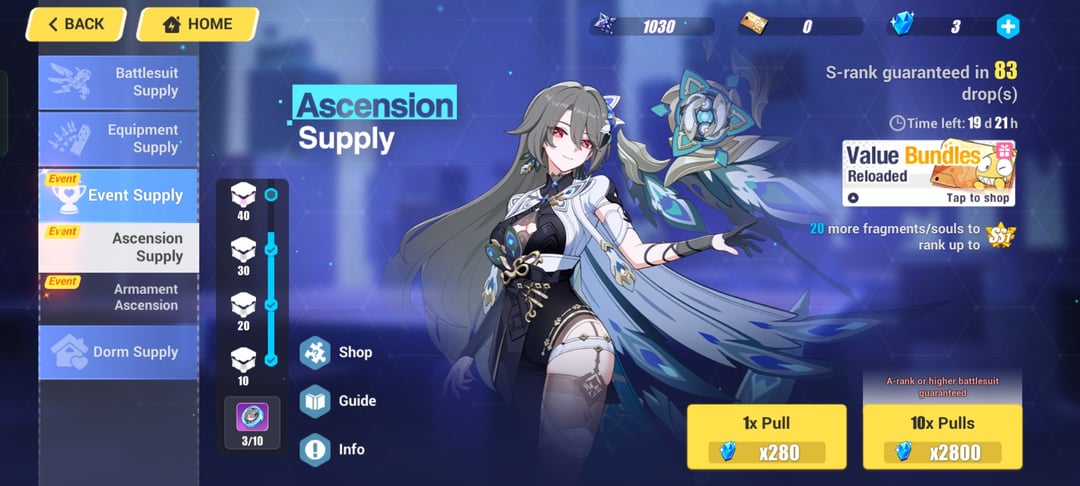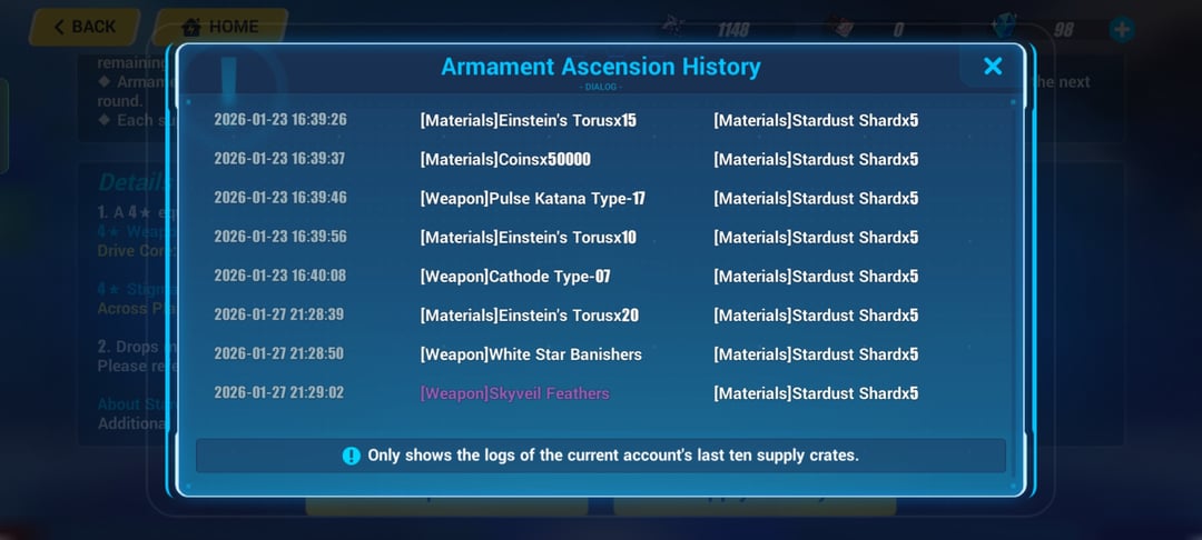 3 番目の画像は、8 回引く以内に彼女の武器を入手したところを示しています