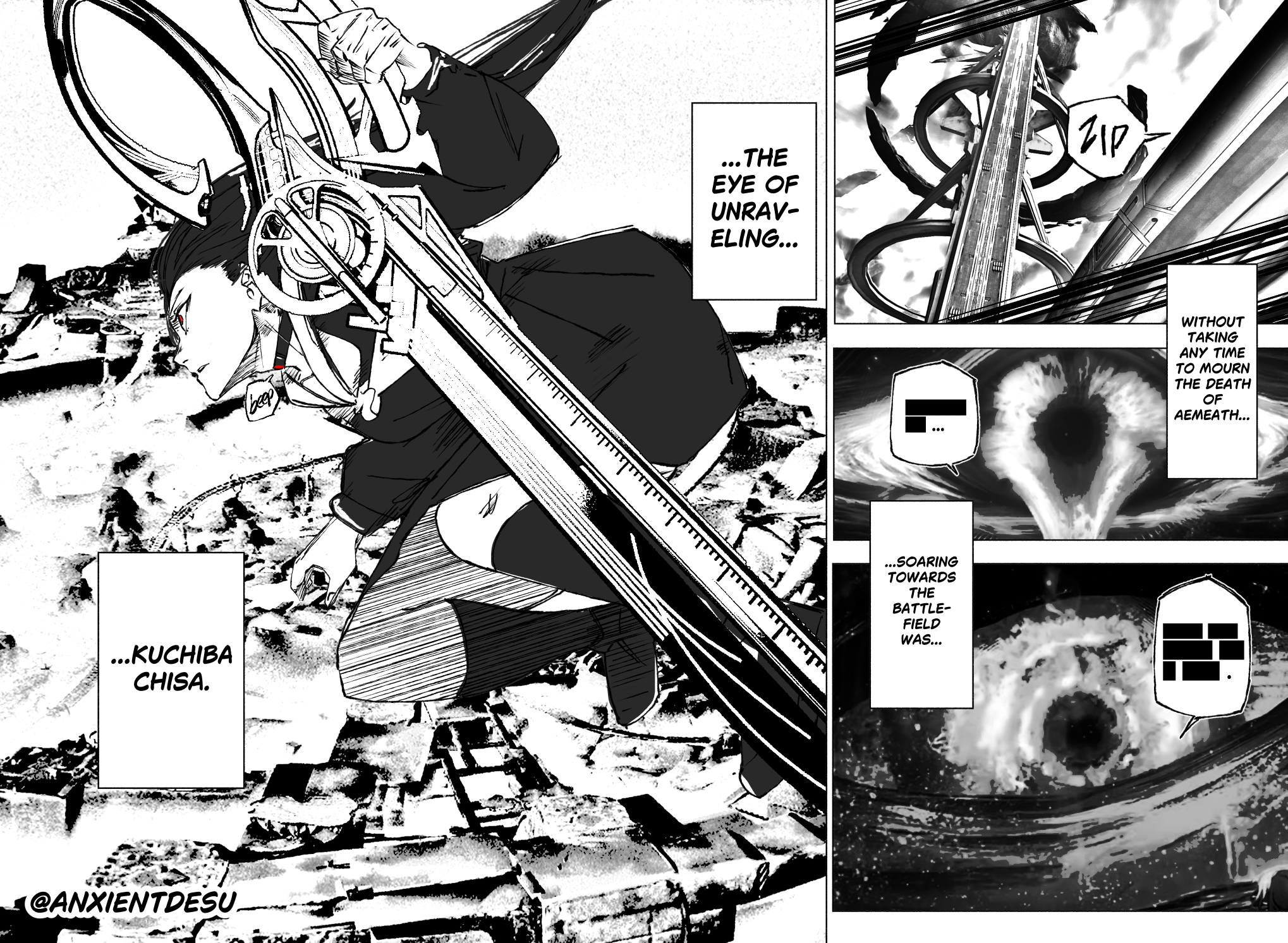「戦場に向かって飛翔したのは……解解の瞳、朽葉千沙」