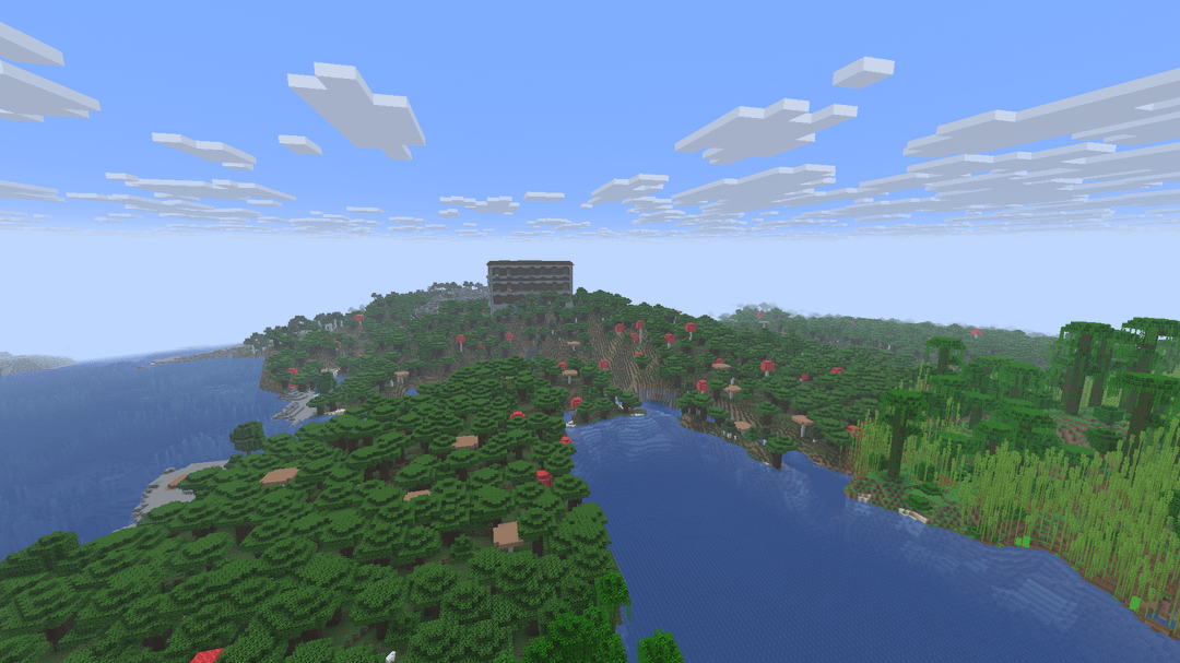 つまり、これはあなたをジャングルバイオームにスポーンさせますが、暗い森バイオームに向かって少しトラバースすると、突然森の邸宅が現れます(私は古いジャガイモPCでMCを実行しています)TM。これらのスクリーンショットでほとんど殺されました。私のレンダリング距離は最悪です)。言うまでもなく、もう少し先には海洋記念碑があります(そして廃墟となったネザーポータルもありますが、それほど面白いものではありません)。
