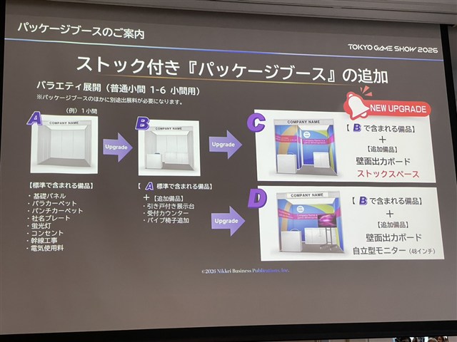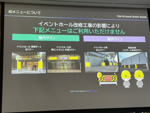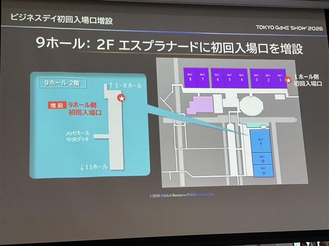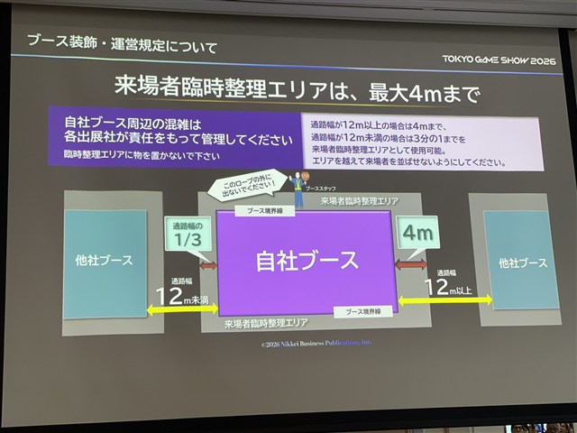 なお、東京ゲームショウでは混雑時、自社ブースの周囲の通路に「来場者臨時整理エリア」が設けられている。これらの詳細に関しては、7月に開催される出展社説明会にてお伝えするとのことだった。