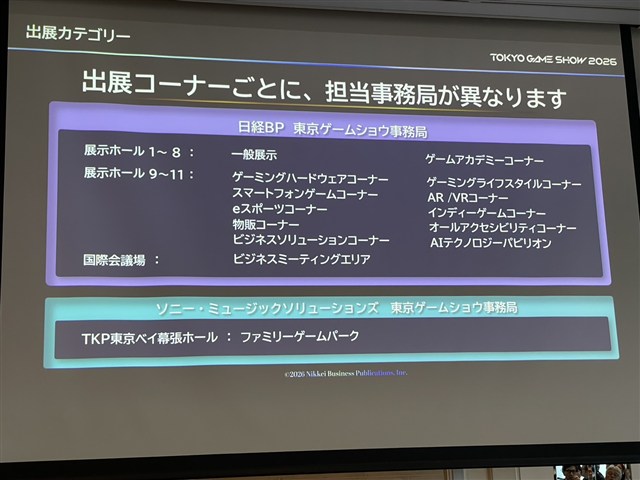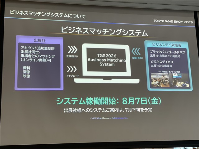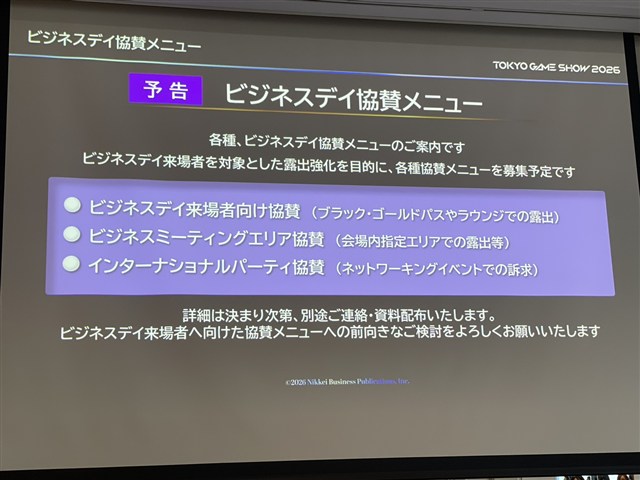ここからは日経BP・東京ゲームショウ事務局の稲田和音氏よりBtoB施策についての発表が行われた。