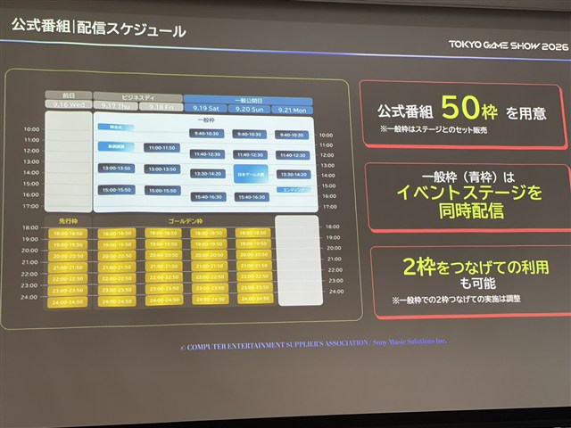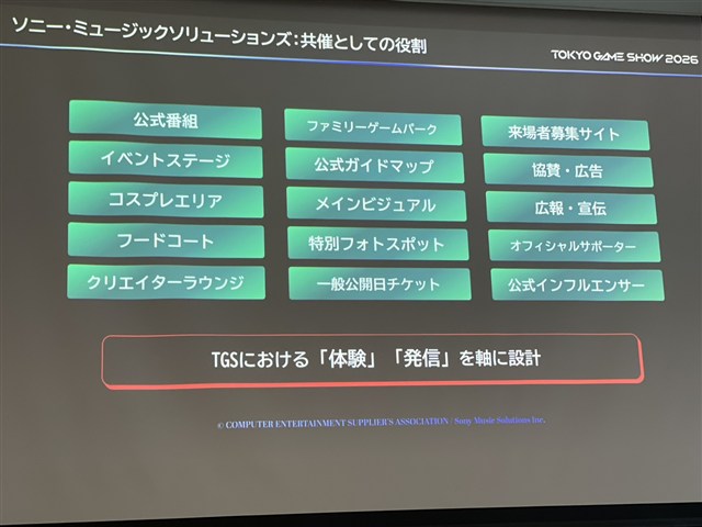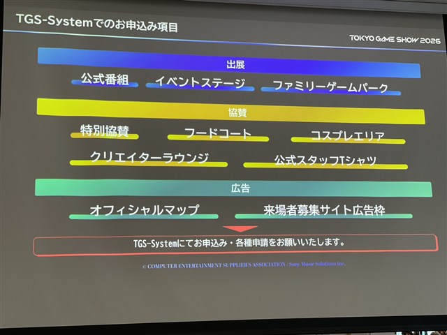 なお、ソニー・ミュージックソリューションズが担当する各種企画、協賛、出展メニューに関する申し込みは、「TGS-System」にて2月10日より開始している。