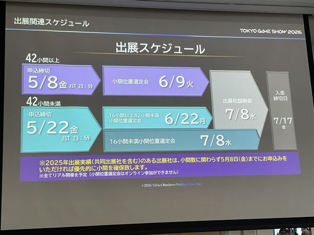 最後に、スケジュールについて。出展関連については以下の通りとなっている。